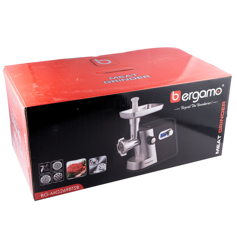 چرخ گوشت برگامو مدل MG2698TSB با توان 4000 وات، ازدستگاه های مشابه خود بسیار قدرتمندتر است. توسط این چرخ گوشت میتوان 2 کیلوگرم گوشت را در عرض یک دقیقه چرخ نمود. بدنه چرخ گوشت برگامو مدل MG2698TSB از جنس استیل و پلاستیک مقاوم بوده که علاوه بر زیبایی و سبکی، استحکام بیشتری به دستگاه میبخشد. این چرخ گوشت کارایی های مختلفی دارد و مهمترین کار آن ، چرخ کردن گوشت در ابعاد ریز و درشت 4 و 7 میلی متری توسط 2 شبکه از جنس استیل ضد زنگ میباشد. این چرخ گوشت بر روی پنل خود دارای کلید روشن و خاموش و عملکرد معکوس میباشد . عملکرد چرخش معکوس زمانی به کار میرود که دهانه دستگاه با گوشت یا استخوان مسدود شده باشد و با فشردن این کلید تمامی مواد برگشت داده میشود و میتوان دوباره آن را چرخ نمود و انسداد آن را برطرف کرد. تمامی قطعات این چرخ گوشت به راحتی از هم جداشده و شست و شوی قطعات آن آسان است.