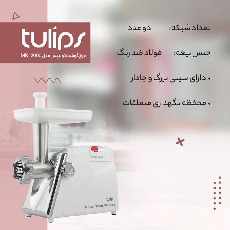 | سایر توضیحات | – قابلیت چرخ بیش از 65 کیلوگرم گوشت در ساعت – دارای سیستم قطع کننده خودکار مدار الکتریکی – مجهز به کلید دور بر گردان موتور – دارای محفظه نگهداری سیم برق – تیغه فولادی ضد زنگ با طراحی ژاپنی – دارای سینی بزرگ و جادار برای سرعت بخشیدن به کار – گلویی ایمن مطابق با استاندارد – محفظه نگهداری متعلقات – دارای گلویی فلزی کاملا جداشونده فلزی با دوام |