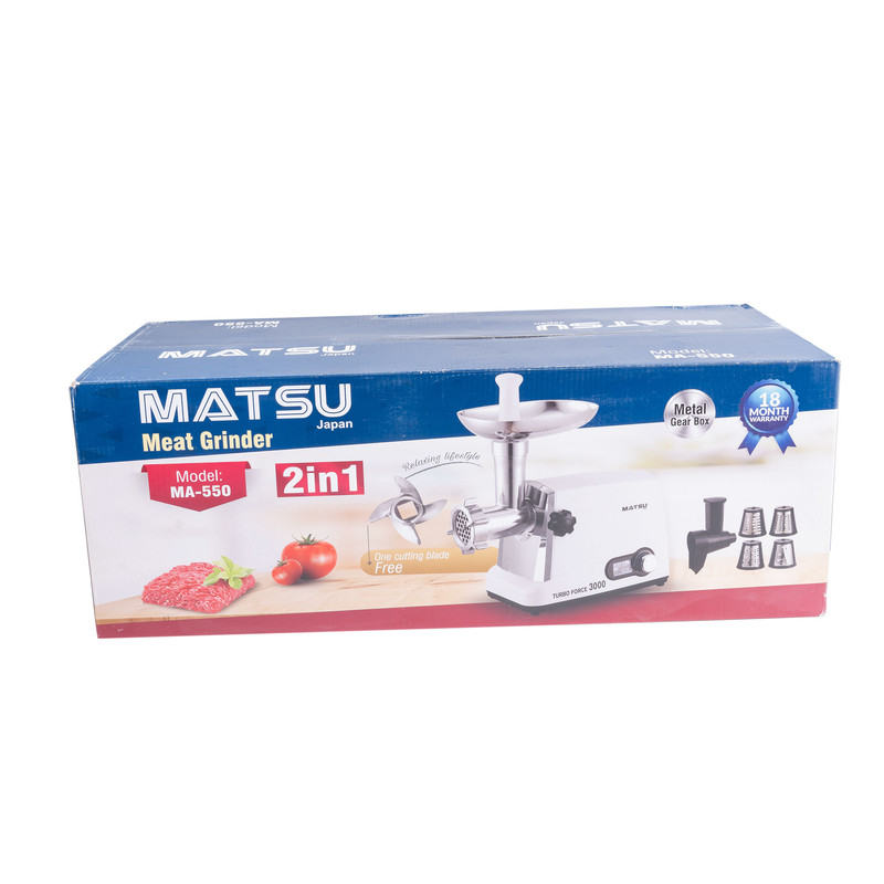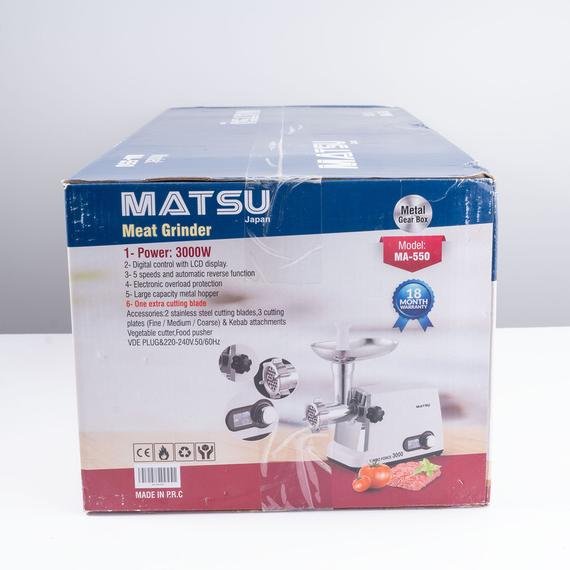 چرخ گوشت ماتسو مدل MA-550، با طراحی مدرن و کاربردی خود، انتخابی ایدهآل برای آشپزخانههای شماست. این دستگاه با گیربکس فلزی محکم و توان مصرفی 3000 وات، قدرت و دوام بالایی دارد. صفحه نمایش کنترل دیجیتالی ال سی دی به شما امکان میدهد تا با دقت و آسانی، تنظیمات دستگاه را کنترل کنید. همچنین، سیستم محافظتی پیشرفته در برابر بار بیش از حد در دستگاه تعبیه شده است تا از ایمنی دستگاه در استفادهی طولانی مدت اطمینان حاصل شود. تیغه برش اضافی و دو تیغه برش از جنس استیل ضدزنگ که همراه دستگاه ارائه میشوند، به شما این امکان را میدهند که گوشت را با دقت و به راحتی برش دهید. علاوه بر این، سه صفحه برای رنده کردن با اندازههای ریز، درشت و متوسط و یک گوشتکوب، تجربهای کامل از چرخ کردن گوشت را به ارمغان میآورند. با ماتسو مدل MA-550، آمادهسازی مواد غذایی با کیفیت و سرعت بینظیری انجام میشود و شما میتوانید برای هر دستور پختی، گوشتی عالی و مطابق با نیاز خود داشته باشید.