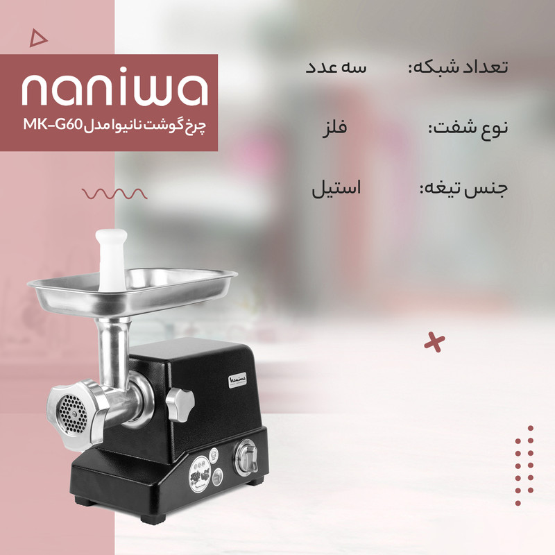 | سایر اقلام همراه محصول | دارای شبکه سبزی شبکه درشت شبکه ریز سوسیس ساز تیغه دو روژاپنی |