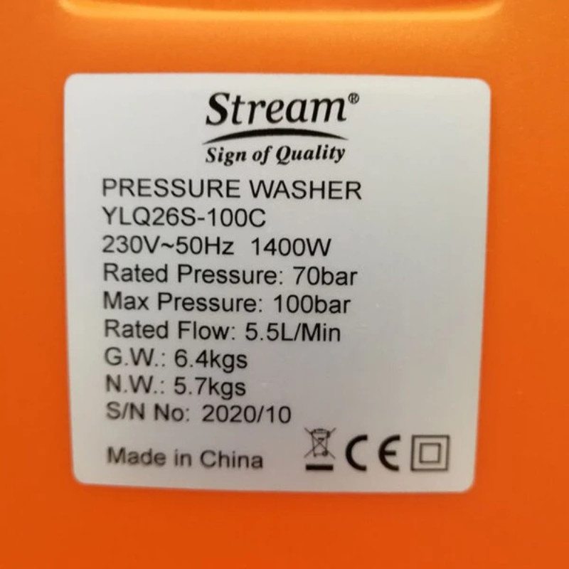 پمپ آب کارواش استریم مدل Stream YLQ-26S-100C جهت شست و شوی خودرو، لوازم کشاورزی، حیاط، پارکینگ، نمای ساختمان و دیوارها مورد استفاده قرار می گیرد.کارواش خانگی 100 بار استریم مدل YLQ-26S-100C