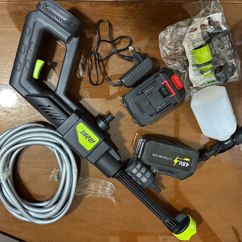 کارواش خانگی فوق از نوع شارژی مدل MDHL8100 برند MDHL همراه با پمپ آب ، فیلتر آب ، باطری لیتیومی قوی 48V ، شلنگ 6 متری ، شارژر مخصوص ، یک سری آب 6 حالته ، مخزن مواد شوینده ، رابط ها و کیف مخصوص میباشد.کارواش شارژی فوق دارای باتری 48V است که منبع پاشش آب را تامین میکند. کارواش فوق دارای قدرت مکش بالایی میباشد که در صورتی به آب لوله کشی دسترسی نداشته باشید میتوانید با خیال راحت از این کارواش شارژی استفاده نمایید. کارواش فوق دارای فیلتر آب میباشد تا از ورود آلودگی به داخل کارواش جلوگیری کند همچنین کارواش فوق دارای مخزن شوینده میباشد که میتوان مواد شوینده را داخل آن ریخت. باتری این محصول از نوع یونیورسال می باشد که در صورت نیاز امکان تعویض با دستگاه های شارژی مانند پیچگوشتی و غیره را دارد.
