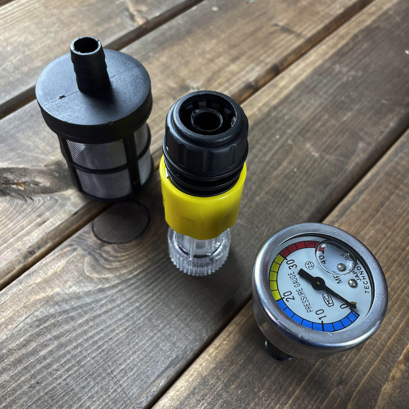 این کارواش به تفنگ قابل تنظیم مجهز شده که امکان تنظیم زاویه پاشش آب را برای انجام فعالیت های گوناگون فراهم می کند. همچنین این دستگاه به تفنگ آبپاش فشار قوی، کوپلینگ فشار قوی و مخزن مواد شوینده داخلی، شلنگ جهت کشش آب از سطل (برای سم یا سایر سیالات) مجهز است. طراحی ارگونومیک و وزن 11.5 کیلوگرمی از دیگر مشخصات این کارواش است.