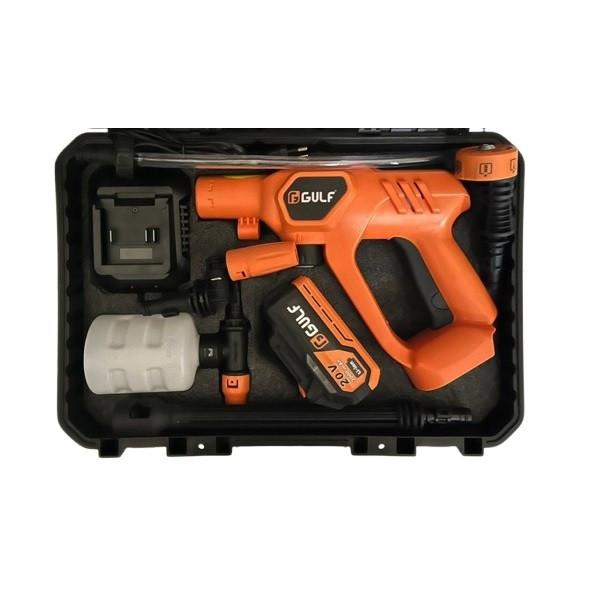 کارواش و سمپاش شارژی 8620 گالف ساخت چین می باشد. این کارواش دارای موتور صنعتی ذغالی می باشد که دارای موتور 280 وات 45 بار می باشد .که از باطری 20 ولت 3آمپر و نشانگر شارژ بر روی خودطاری قرار داد بهره می برد که با هر بار شارژ باطری 15 دقیقه به صورت مداوم قابل استفاده است پایه شارژر این دستگاه از نوع فست شارژ می باشد. از این دستگاه به عنوان سمپاش شارژی هم می توان استفاده کرد. این دستگاه داری یک کف پاش و یک نازل که قابلیت تنظیم زاویه پاشش دارد و یک نازل 6 حالته می باشد که می توان هم مستقیم به دستگاه متصل کرد و هم به وسیله یک رابط 30 سانتی به دستگاه متصل کرد.دارای 5 متر شلنگ و فیلتر مخصوص جهت مکش آب است. این دستگاه قابلیت متصل کردن باطری آب 1.5 لیتری به صورت مستقیم به زیر دستگاه را دارد.
