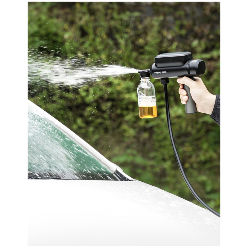 شروع به شستوشو: کارواش شارژی را روشن کرده و با تنظیم نازل، شستوشوی خودرو را آغاز کنید.