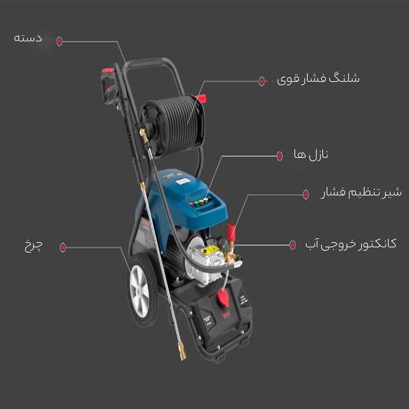 کارواش صنعتی رونیکس مدل RP-0230 به یک موتور القایی با سیمپیچی مسی مجهز است که با توان 2800 وات کار میکند و دستیابی به حداکثر فشار آب خروجی 230 بار را امکانپذیر میکند. این دستگاه صنعتی برای فعالیتهای پرفشار و تمیزکاری در مقیاس وسیع در کارگاهها و کارخانهها استفاده میشود.این دستگاه مجهز به سیستم توقف خودکار و سیستم محافظ دمای داخلی است. همچنین به پنج نازل باکیفیت مجهز شده که به راحتی در زوایای پاشش صفر، 15، 25، 40 و 65 درجه قابل تنظیم هستند.پمپ با قابلیت خود پرایمینگ یا خودمکش این دستگاه کار با آن را در صورت نبود آب شهری امکان پذیر میکند .این کارواش در بستهبندی رونیکس همراه با تفنگی YLG06، لانس، نازل صفر، 15، 25 و 40 درجه، شلنگ با بافت فلزی 10 متری، کابل برق 5 متری و شلنگ ورودی آب 3 متری عرضه میشود