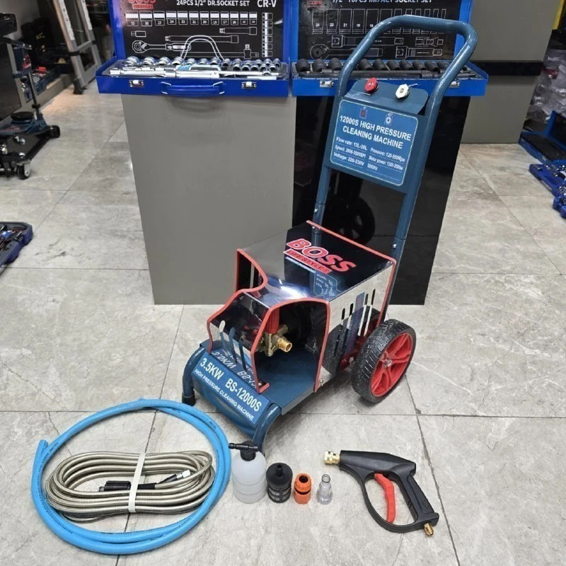 کارواش کالسکه ای 300 بار باس یکی دیگر از محصولات کاربردی شرکت معتبر BOSS می باشد شرکت باس یکی از برندهایی است که از لحاظ تنوع محصول پرتنوع ترین محصولات و کامل ترین جوریت ابزار را در ایران و در میان رقبا دارا می باشد .کارواش کالسکه ای باس یکی از محصولات عالی این شرکت است که بصورت اصلی و پلمپ فقط توسط ایران باس (IRAN BOSS) توزیع میگردد کارواش کالسکه ای باس از کارواشهای نیمه صنعتی تولیدی شرکت معتبر BOSS می باشد که مشخصاتی به شرح زیر است: فشار دستگاه 300 بار می باشد که دارای اسکلت و ساختار کاملا فلزی و مقاوم می باشد. همچنین قویترین موتور کارواش افقی فلزی در بازار می باشد این کارواش کالسکه ای از نظر کیفیت با کیفیت ترین کارواش دینامی بازار در رنج قیمتی خود می باشد و این دستگاه مناسب امور حرفه ای شستشو، صفر شویی، شستشو حیاط، خودور، فرش، مکان های روغنی و … می باشد و نیز پهنه پاشش توسط نازل قابل تنظیم است و دارای قطع کن هوشمند و همچنین موتور دینامی سیمپیچ تمام مس دارد که قابلیت پاشش سم و انواع سیالات را نیز دارا می باشد و همچنین دارای گان کوتاه و بلند، شلنگ فشار قوی، شلنگ ورودی، فیلتر تصفیه و اتصالات ورودی می باشد در نهایت کیفیت بسیار بالا دارد امیدواریم از استفاده از این کارواش لذت ببرید