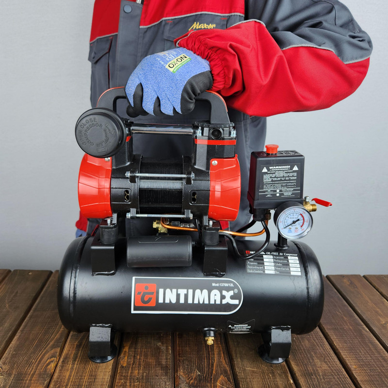 کمپرسور باد 12 لیتری اینتیمکس، به خاطر طراحی به روز در قسمت پمپ آن، فوق‌العاده کم‌صدا بوده و به همین دلیل به آن سایلنت یا بی‌صدا می‌گویند. این دستگاه، مجهز به مخزن 12 لیتری و موتور القایی 1300وات است و توان بالایی را جهت کار به صورت مداوم ایجاد می‌کند. از دیگر ویژگی‌های این کمپرسور باد می‌توان به فشار عملکردی 9 بار اشاره کرد که برای دستگاهی با این ابعاد بسیار قابل توجه است. دبی خروجی هوای این کمپرسور 45 لیتر بر دقیقه و سرعت چرخش موتور آن 2850 دور بر دقیقه می باشد. دارای مخزن 12 لیتری با موتور 1300 واتی که برای رنج وسیعی از کاربری ها توان تولید می کندذخیره هوای کافی با فشار حداکثر 9 باری برای عملیات های مداوم داردطراحی جمع و جور و سبک مجهز به دسته برای جابجایی و استفاده آسان می باشدمجهز به موتور القایی با توان بالا جهت کار به طور مداوم می باشدمجهز به سیلندر با طراحی جدیدتر نسبت به مدل قبلی به منظور پر شدن مخزن هوا در حداقل زمان می باشدبدون نیاز به روغنکاری با طول عمر بالا است کم صدا با طراحی بروز در قسمت پمپ دارای شیر تخلیه در زیر مخزن می باشدمجهز به شیر برقی به منظور افزایش کارایی در عملکرد است حداقل لرزش در حین کار را داردمجهز به گیج فشار با کیفیت است مجهز به سوییچ محافظ حرارتی می باشدمجهز به لاستیک لرزه گیر با کیفیت و پایه های فلزی با دوام قابل استفاده در محیط های شیب دار و ناهموار است