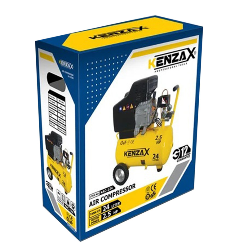 کمپرسور باد 24 لیتری کنزاکس مدل 5402، با توان 2.5 اسب بخار و ولتاژ 220 ولت (50 هرتز)، سرعت 2850 دور بر دقیقه قوی ترین کمپرسور 24 لیتری بازار ایران است. این کمپرسور به دلیل داشتن، سوپاپ اطمینان و مجهز بودن به شیر تخلیه مخزن و همینطور به دلیل داشتن سیستم اتوماتیک قطع کن حرارتی یکی از ایمن ترین کمپرسورهای بازار نیز محسوب میشود. علاوه بر این کمپرسور باد کنزاکس مدل 5402، مجهز به دو عدد کوپلینگ اتصال و دو عدد گیج فشارسنج نیز هست. حداکثر فشار کاری در نظر گرفته شده برای این کمپرسور تک سیلندر 8 بار معادل 115psi و حجم هوای خروجی آن 200 لیتر بر دقیقه است. همراه این کمپرسور مواردی مانند پایه لاستیکی، فیلتر هوا، بطری روغن، و جهت سهولت در حمل و نقل و استفاده، دو عدد چرخ نیز ارائه میشود.