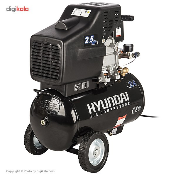 محصولی که مشاهده می‌کنید کمپرسور هوای (AC-2425) از تولیدات شرکت ابزارسازی «هیوندای» (Hyundai) است. این مدل با حجم مخزن 24 لیتر از سری کمپرسورهای صنعتی این شرکت محسوب می‌شود. انرژی مورد نیاز این کمپرسور از طریق برق 220 ولت شهری تامین می‌شود. همچنین ساختار موتور این کمپرسور طوری طراحی شده که برای کارکرد نیاز به روغن دارد. دبی خروجی این دستگاه 200 لیتر بردقیقه است، یعنی در هر دقیقه حجمی معادل 200 لیتر هوا از قسمت خروجی این کمپرسور خارج می‌شود. شرکت سازنده دو خروجی برای این دستگاه درنظر گرفته که در حالت عادی از مجموع این دو خروجی فشاری برابربا 40 پی‌اس‌آی هوا خارج می‌شود و این فشار تا 120 پی‌اس‌آی قابل افزایش است. دو عدد فشار سنج عقربه‌ای روی این دستگاه تعبیه شده که میزان فشار خروجی کمپرسور را نمایش می‌دهند. از دیگر ویژگی‌های قابل اشاره‌ی این کمپرسور می‌توان به وجود سوپاپ اطمینان اشاره کرد که در صورت اعمال شدن فشار هوا بیش از حد مجاز، سوپاپ از حالت عادی خارج شده و هوای اضافه‌ را به بیرون منتقل می‌کند و این عمل موجب ایمنی بیشتر دستگاه می‌شود. از این کمپرسور می‌توان در واحدهای صنعتی کوچک و بزرگ برای فعالیت‌هایی نظیر رنگ‌کاری با پیستوله، آچار بکس بادی و تمامی دستگاه‌های بادی استفاده کرد.