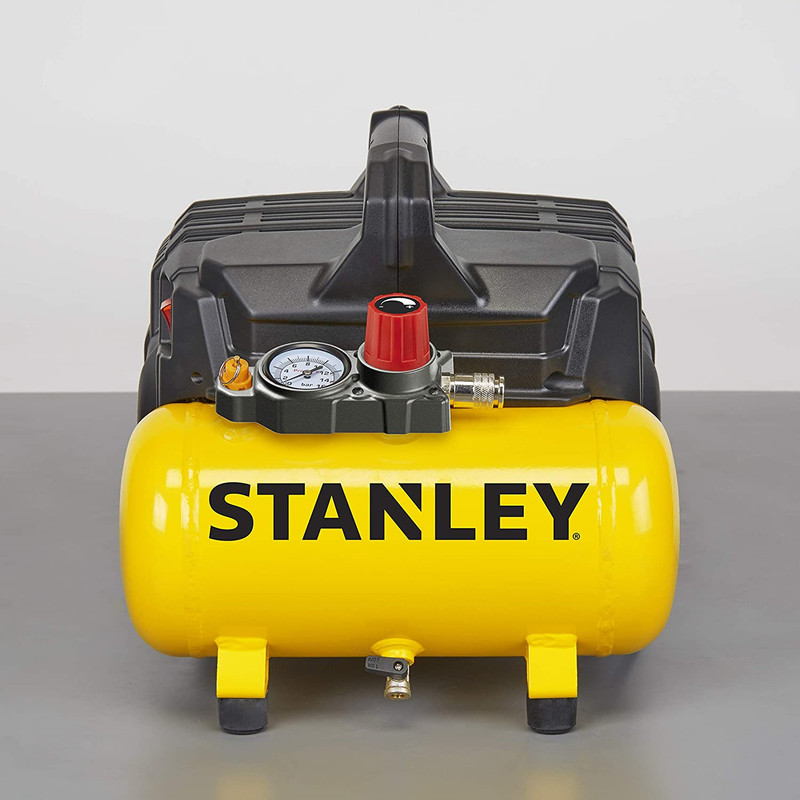 سطح صدای بسیار پایین (59 دسی بل). پوشش پلاستیکی مقاوم به طور کامل از تمام قطعات مکانیکی محافظت می کند. پنل کنترل با سنج خوانا آسان. کلید روشن/خاموش. کمپرسور بدون روغن. مناسب برای محیط های خانگی مخزن 6 لیتری قدرت: 1 اسب بخار