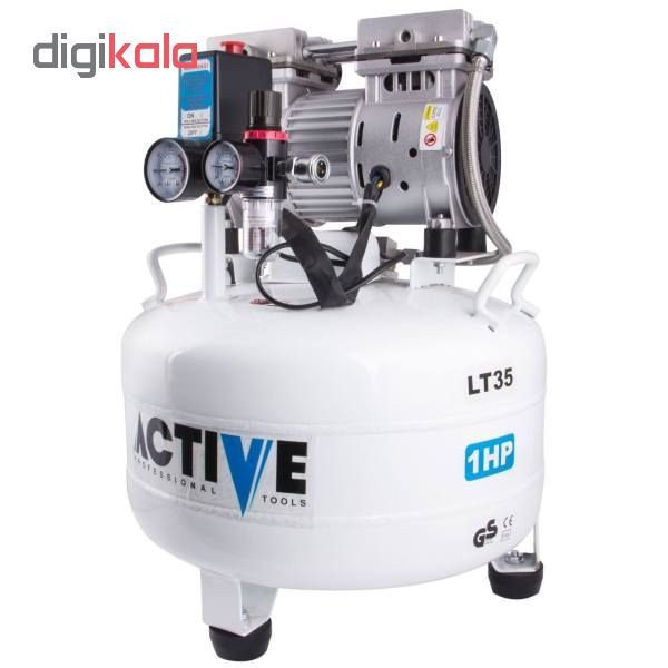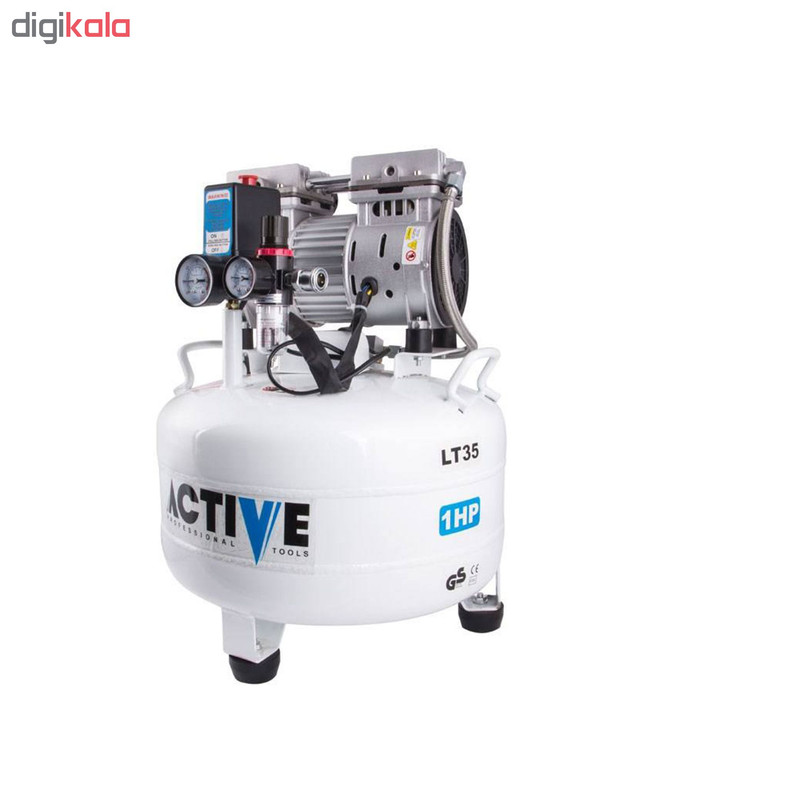 کمپرسور هوا دستگاهی جهت انتقال قدرت توسط باد فشرده شده است. کمپرسورهای هوا عموما با توجه به سایز مخزن و بالطبع نوع موتور آن دسته بندی میشود.« کمپرسور هوای اکتیو مدل AC1335SR » بدون نیاز به روغن کاری و با صدای بسیار کم به بازار عرضه میشود که عموما به نام کمپرسور بی صدا معروف است. موتور این کمپرسورها القایی است و دارای عمر بالاتری هستند. این کمپرسور دارای مخزن 35 لیتری هوا و موتور دارای 1 اسب بخار است. در تمامی کمپرسورهای اکتیو از فیلتر هوای فلزی ازجمله در کمپرسور هوا مدل AC1335SR استفاده شده است.در این کمپرسور هوا همچنین از لولههای از جنس مس (نه فقط روکش مس) و نیز سوپاپ اطمینان از جنس آلیاژبرنج (نه روکش برنج) استفاده شده تا رطوبت موجود در هوا باعث خرابی یا پوسیدگی این قطعات نشود و عمر مفید دستگاه افزایش یابد. از بارزترین مشخصات کمپرسور اکتیو مدل AC1335SR وجود پیستون با قطر بزرگتر و در نتیجه کاهش مدت زمان پر شدن هوای داخل مخزن شده تا در کوتاهترین زمان ممکن مخزن از هوای فشرده پر شود. مخزن کمپرسور هوای اکتیو مدل AC1335SR دارای 2.5 میلیمتر ضخامت است که کاملا منطبق با استاندارد CE هست. این مسئله باعث افزایش ایمنی دستگاه به علت مقابله با رطوبت داخل هوای فشرده داخل مخزن است. همچنین مخزن این کمپرسور دارای پیچ تخلیه رطوبت داخل مخزن نیز هست.هنگامی که فشار داخل مخزن به حداکثر میرسد، کلید قطع کن اتومات به طور خودکار کارکرد موتور را قطع میکند و نیز هنگامی که فشار داخل مخزن به حداقل میرسد، دستگاه به طور اتومات روشن میشود تا هوای فشرده داخل مخزن را پرکند.این کالا فاقد کارتن میباشد.