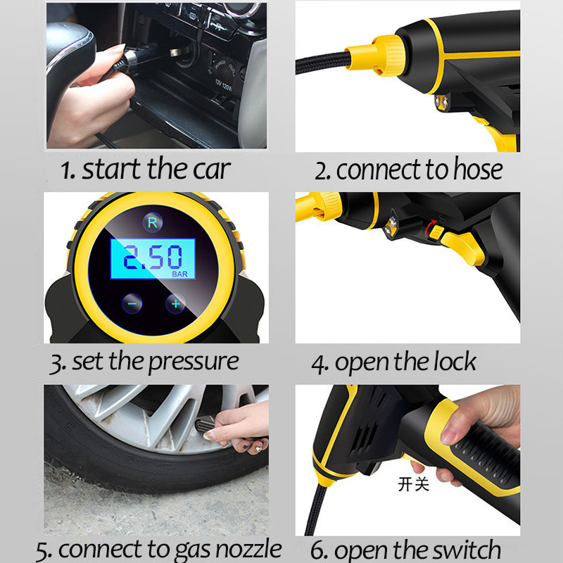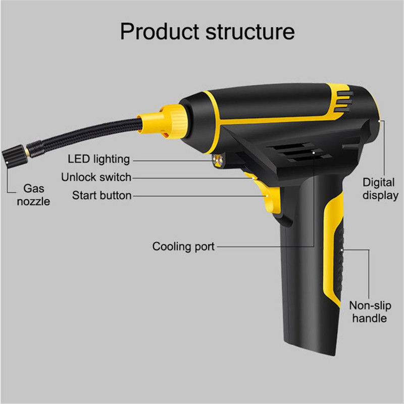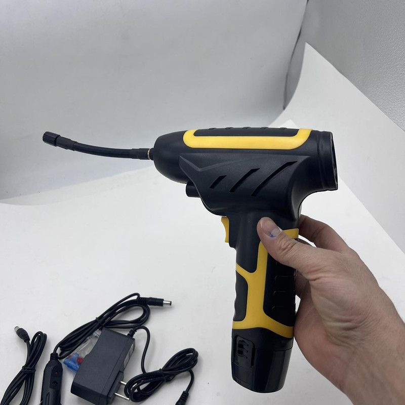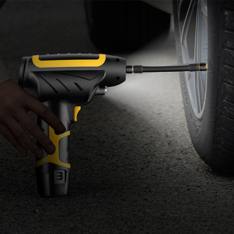 نسل جدید پمپ های هواGun ساخت کشور چین مینی کمپرسور شارژی دوحالته باس با موتور ذغالی و تغذیه 12 ولت محصولی ایده آل برای باد زدن تایر، توپ، تشک، دوچرخه و … تغذیه با باتری لیتیومی و امکان شارژ باطری با برق فندک یا برق شهر و یا برق USB و هموچنین توقف خودکار موتور بعد از رسیدن به فشار باد مورد نیاز مجهز به پنل دکمه ای و نمایشگر دیجیتالی مقدار فشار خروجی دارای چراغ LED برای روشن کردن سطح کار در فضای تاریک شلنگ 10 سانتی متر و امکان کار ممتد قابل کار با باتری های سری Procore طراحی ارگونومیک با دسته روکش دار و همچنین آداپتور برق 220 ولت و کابل شارژ USB و مبدل سری فندکی برای شارژ باطری داخل بسته بندی موجود هست .