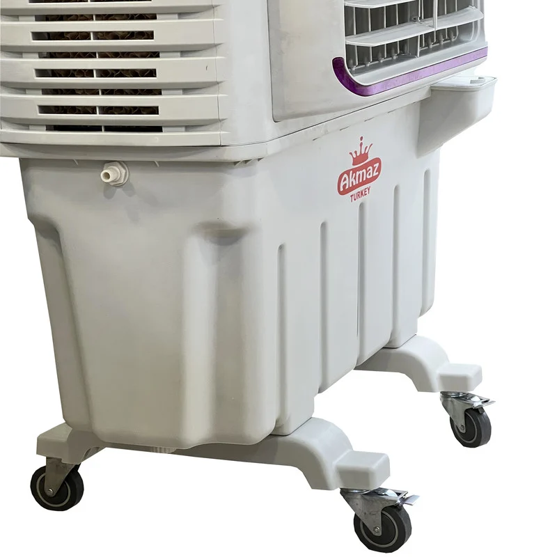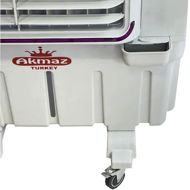 کولر آبی سلولوزی آکماز یکی از برندهای قدیمی تولید کولر می باشد این مجصول تمام قطعات از ترکیه آمده ور در منطقه آزاد ارس مونتاژ می شود و قطعات اعم از موتور گیربکس پمپ همگی ساخت ترکیه می باشد این کولر اینورتر و کم مصرف می باشد مصرف در اخرین سرعت 290 وات می باشد یعنی در حد دو عدد لامپ 100 واتی مصرف دارد و کم مصرف می باشد این کولر دارای پد سلولوزی می باشد که دیگر مثل پوشال نیاز به تعویض هر ساله نمی باشد یکی از محسنات این کولر دارای مخزن یخ می باشد که بطری های ابی شکل را با آب پر کرده و داخل فریزر قرار دهید تا یخ شود بعد بطری های یخ زده را داخل محفظه قرار دهید تا یخ آب شود و وارد مخزن های اب شده و سرمای کولر را دوبرابر می کند و دیگر اینکه این کولر دارای شناور اتوماتیک بوده که با وصل شیلنگ اب شهری مخزن اب را به طور اتوماتیک قطع و وصل می کند و مخزن بزرگ اب این کولر 70 لیتری می باشد که این کولر داری کنترل از راه دور نیز می باشد و دیگر محسنات دارای تایمر ساعت 12 ساعته نیز می باشد و اینکه جلو پنجره این کولر هوادهی چپ و راست اتوماتیک میباشد و هوادهی بالا پایین دستی می باشد و اینکه این کولر بدون آب نیز می توان استفاده کرد و پمپ این کولر از نوع آکواریومی بوده و در داحل آب قرار می گیرد مثل کولر های معمولی بیرون از آب نمی باشد . اینکه جنس بدنه کولر تماما فایبرگلاس می باشد دیگر زنگ زدن و خراب شدن امکان ندارد و سالیان متمادی می توان استفاده کرد و اینکه کولر چرخ دار بوده و چرخها از نوع آمبولانسی و مقاوم و دارای استپ دار و در جهت حمل در سهولت در مکان می توان استفاده کرد و اینکه این کولر ها سایز بزرگ بوده در مکانهای بزرگ فضای بزرگ مانند باغ رستوران ویلا خانه ها و نمایشگاه معازه های بزرگ و هایپر و غیره ….می توان استفاده کرد