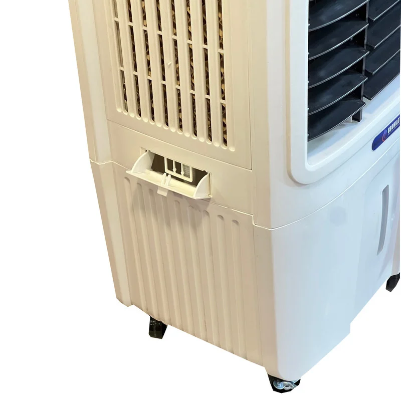 ویژگی برجسته این مدل، وجود جایخی مخصوص بطری و کیسه یخ در بخش مخزن است. این بخش با افزودن یخ یا آب سرد، سرمایش تبخیری حاصل از پد سلولزی را تشدید کرده و هوایی بهمراتب خنکتر تولید میکند. پدهای سلولزی قابل شستوشو با ساختار لانهزنبوری خنککنندگی یکنواخت، جذب آب بیشتر و دوام طولانیتری نسبت به پوشالهای سنتی دارند. سیستم آبرسانی دستگاه دستی است؛ یعنی کاربر بهراحتی میتواند با پرکردن مخزن، عملکرد کولر را در کنترل خود داشته باشد.