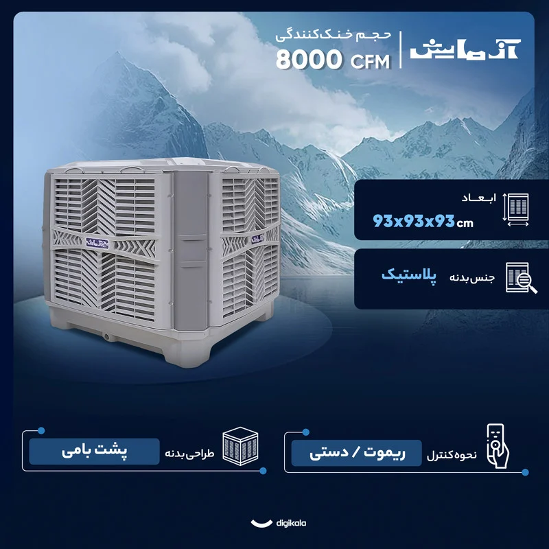 کولر آبی سلولزی آزمایش مدل پلیمری با حجم خنککنندگی ۸۰۰۰ CFM، یک راهحل مدرن و قدرتمند برای سرمایش فضاهایی با متراژ بیش از ۱۲۰ متر مربع است. مهمترین ویژگی این مدل، استفاده از پد سلولزی به جای پوشال است که باعث افزایش راندمان تبخیری، کاهش مصرف آب و جلوگیری از ورود گردوغبار به محیط میشود و هوای خنک و پاکیزهتری را فراهم میسازد.