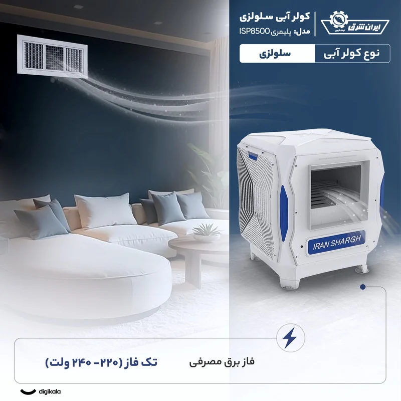 در بخش فنی، کولر آبی سلولزی 8000 ایران شرق مدل 85P از پوشالهای سلولزی با قابلیت نصب فیلتر گرد و غبار بهره میبرد که باعث تولید هوای پاکتر و کاهش ورود آلودگی به محیط میشود. استفاده از سلولز موجب جذب یکنواختتر آب، کاهش مصرف و افزایش راندمان خنککنندگی در مقایسه با پوشالهای معمولی است. سیستم فلوتر مکانیکی سطح آب را بهطور ثابت نگه میدارد و اتصال مستقیم کولر به آب شهری، عملکرد بدون دردسر و بدون نیاز به پر کردن دستی مخزن را فراهم میکند. موتور تکفاز با ولتاژ ۲۲۰ تا ۲۴۰ ولت نیز عملکرد پایدار و سازگار با برق خانگی ارائه میدهد.
