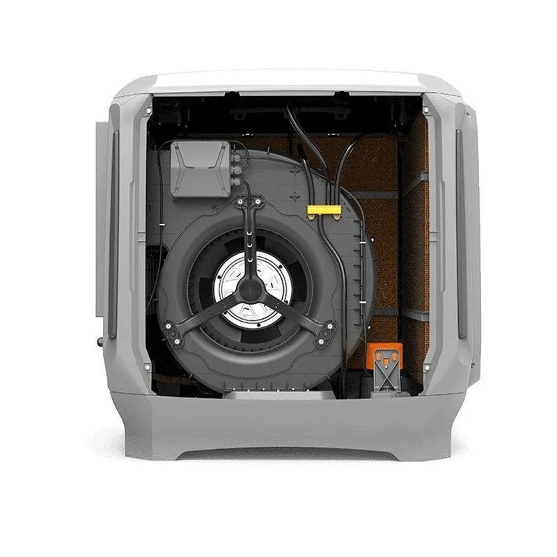 کولر آبی بالازن ایرومکس مدل AM85 با ظرفیت 8000 یکی از انتخاب‌های مدرن و به‌صرفه برای خنک‌سازی فضاهای متوسط و بزرگ به شمار می‌رود. این کولر به موتور دایرکت‌درایو BLDC مجهز است که بدون تسمه کار کرده و علاوه بر کاهش مصرف برق، صدای کمتر و طول عمر بیشتری نسبت به مدل‌های سنتی دارد. بدنه دستگاه از جنس پلیمر مقاوم در برابر پوسیدگی، رسوب و نور خورشید ساخته شده تا دوام بالایی در شرایط جوی مختلف داشته باشد. استفاده از پد سلولزی ۱۰ سانتی‌متری در چهار طرف، همراه با سیستم آبریز یکنواخت، هوایی خنک و مطبوع را به‌طور یکدست در محیط پخش می‌کند. از دیگر ویژگی‌های این مدل می‌توان به پمپ تخلیه خودکار، فیلتر توری برای جلوگیری از ورود گرد و غبار و حشرات، ترموستات هوشمند با امکان کنترل پیوسته دور موتور و طراحی مناسب برای کانال‌کشی طولانی اشاره کرد. کولر AM85 با توان خنک‌کنندگی بالا، گزینه‌ای ایده‌آل برای استفاده در فضاهایی با متراژ حدود ۱۵۰ تا ۲۵۰ متر مربع است.