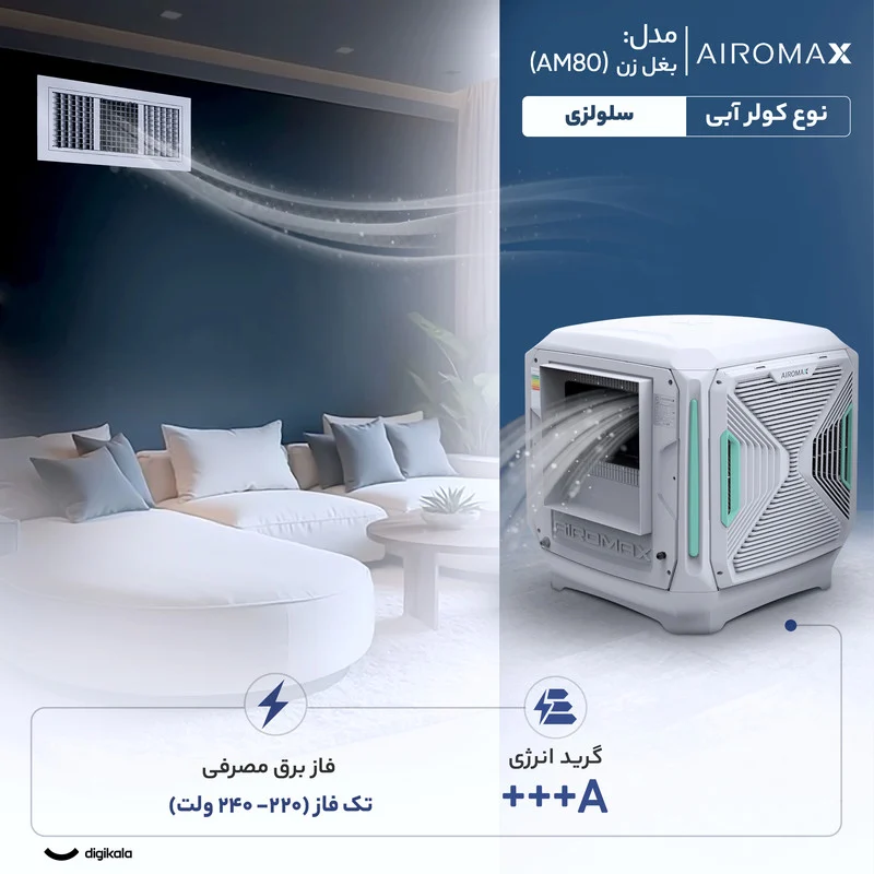 کولر آبی ایرومکس مدل AM80 یک دستگاه خنککننده سلولزی با ظرفیت بسیار بالای ۸۰۰۰ CFM (فوت مکعب در دقیقه) است که به طور خاص برای خنکسازی فضاهای بزرگ با متراژ بیش از ۱۲۰ متر مربع طراحی شده است. این کولر با وجود طراحی بغل زن، برای نصب پشت بامی مناسب است.