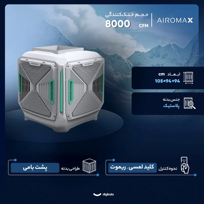 کولر آبی ایرومکس AM80T با طراحی مدرن و بدنهای از جنس پلاستیک مقاوم، انتخاب مناسبی برای فضاهای پشت بامی و مسکونی است که به دنبال یک سیستم خنککننده قوی و کممصرف میگردند. حجم هوادهی ۸۰۰۰ CFM این کولر به خوبی میتواند محیطی بیش از ۱۲۰ متر مربع را پوشش دهد و برای مناطق گرم و خشک بسیار کاربردی است. موتور BLDC این دستگاه که به موتورهای کم مصرف معروف است، علاوه بر کاهش مصرف انرژی، طول عمر بالاتری دارد و صدای کمتری نسبت به موتورهای معمولی ایجاد میکند.
