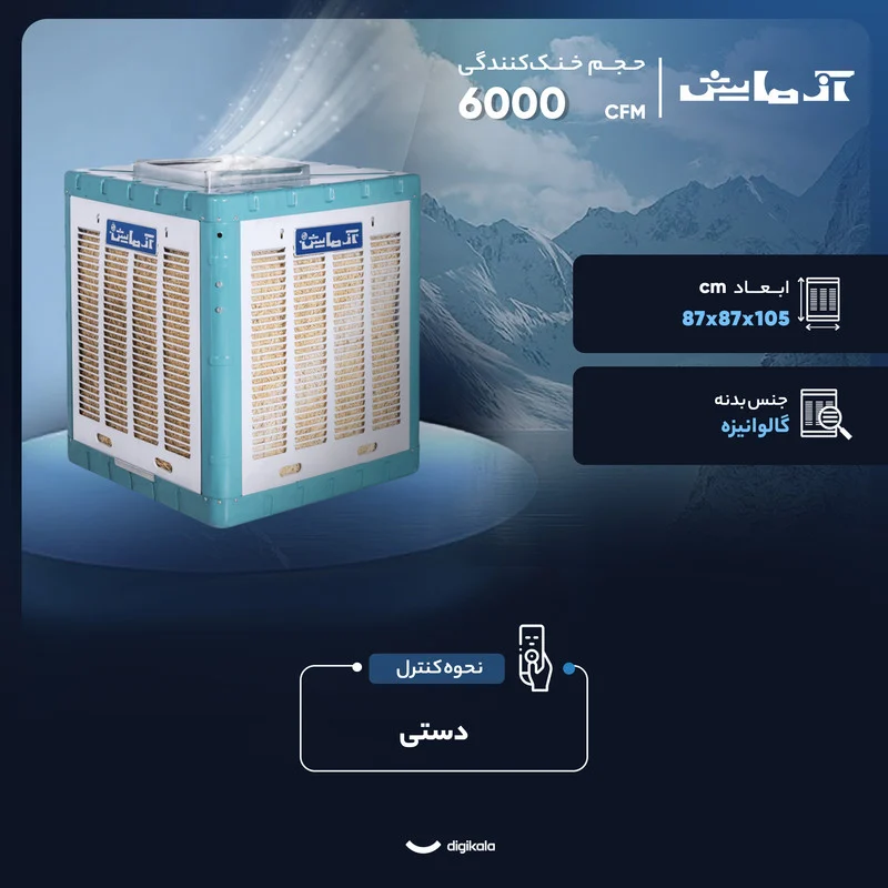 کولر آبی ۶۰۰۰ آزمایش مدل AZ-600U یکی از محصولات باکیفیت و کارآمد برند آزمایش است که برای خنککردن فضاهای متوسط تا نسبتاً بزرگ طراحی شده است. این کولر با حجم خنککنندگی ۶۰۰۰ CFM میتواند محیطهایی با متراژ تقریبی ۷۰ تا ۱۲۰ متر مربع را به خوبی پوشش دهد. اگر به دنبال کولری با قدرت مناسب و عملکرد مطمئن هستید، این مدل میتواند انتخابی مناسب باشد. این کولر از نوع پوشال معمولی است و با سیستم خنککنندگی سنتی اما کارآمد عمل میکند. پوشالهای معمولی بهخوبی توانایی جذب آب و انتقال رطوبت به جریان هوا را دارند و در مناطق گرم و خشک، خنکی مطلوبی ایجاد میکنند. همچنین بهدلیل استفاده از پوشالهای رایج، نگهداری و تعویض آنها آسان و کمهزینه خواهد بود. طراحی دیواری کولر آزمایش مدل AZ-600U باعث شده است فضای کمی اشغال شود و نصب آن در مکانهای مختلف مثل حیاط، تراس یا دیوارهای بیرونی به راحتی انجام گیرد. این کولر با ابعاد ۸۷x۸۷x۱۰۵ سانتیمتر و بدنه گالوانیزه تولید شده است که در برابر رطوبت، زنگزدگی و خوردگی مقاومت بالایی دارد. رنگ استاتیکی مورد استفاده در بدنه هم باعث افزایش دوام و جذابیت ظاهری کولر شده است. کولر AZ-600U به یک موتور با قدرت ۱/۲ اسب بخار مجهز شده است که عملکرد قدرتمند و پایداری ارائه میدهد. همچنین پمپ آب آن با قدرت ۱/۶ اسب بخار به خوبی آب را به پوشالها میرساند تا سطح خنککنندگی دستگاه همیشه در بهترین حالت باقی بماند. این کولر با سیستم کنترل دستی کار میکند و کاربر میتواند به سادگی میزان سرعت و شدت باد را کنترل کند. سیستم فلوتر مکانیکی نیز سطح آب را به شکل خودکار تنظیم میکند تا کارکرد کولر در شرایط بهینه حفظ شود. یکی از نقاط قوت این مدل، استفاده از موتور CRS دو خازنه با راندمان بالا است. این نوع موتور به کولر کمک میکند با مصرف بهینهتر برق، هوادهی مؤثرتری داشته باشد و در عین حال دوام بالایی هم ارائه کند. در مجموع، کولر آبی ۶۰۰۰ آزمایش مدل AZ-600U با کیفیت ساخت خوب، خنککنندگی مناسب، طراحی مقاوم و قیمت منطقی میتواند یک گزینه ایدهآل برای روزهای گرم تابستان باشد.