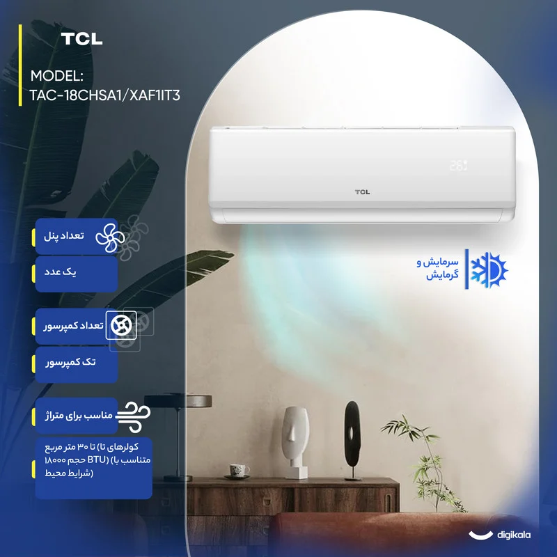 با ترکیبی از ظرفیت مناسب، امکانات هوشمند و طراحی مقاوم، کولر گازی تی‌سی‌ال ۱۸۰۰۰ اینورتر مدل TAC-18CHSA1/XAF1IT3 انتخابی مطمئن برای خانه‌ها و دفاتر کوچک تا متوسط به شمار می‌رود.