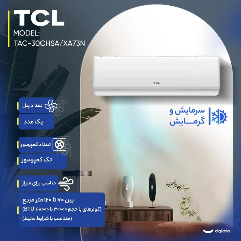 کولر گازی اسپلیت دیواری 30000 دور ثابت تی سی ال مدل TAC-30CHSA/XA73N