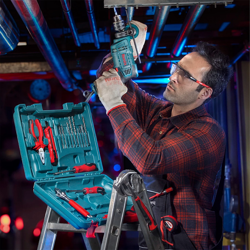 دریل چکشی RS-0001 رونیکس شامل کیت کاملی از انواع مختلف ابزارهای دستی به علاوه سری مته های رونیکس با سایز متفاوت است که در داخل کیف ضد ضربه BMC بسته بندی شده است. این دریل مجهز به موتور 650 واتی بسیار مقاوم برای بهترین کارایی در سوراخ کاری و دریل کاری چکشی می باشد که می تواند سرعتی بالغ بر 2800 دور در دقیقه ایجاد کند.