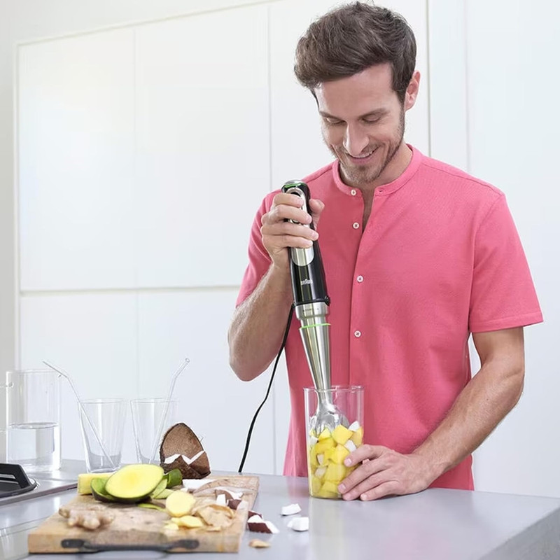 • کاربری پیشنهادی: پوره کردن غذای داغ، خرد کردن سبزی، خرد کردن گوشت نرم، خرد کردن یخ، درست کردن اسموتی و نوشیدنی، له کردن سیب زمینی، هم زدن مایع کیک