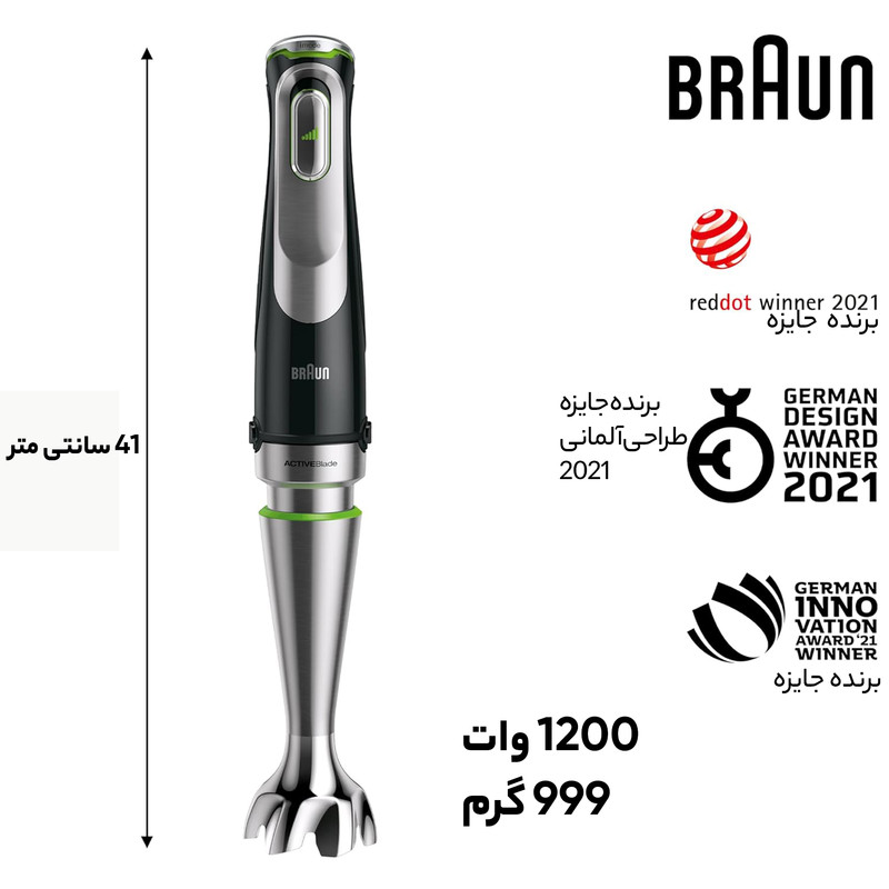 گوشت کوب برقی سری 9 براون که سفارش کشور امارت با بهترین کیفیت ساخته شده است و جزو لاکچری ترین و متفاوت ترین محصولات شرکت براون میباشد.موتور این دستگاه دارای قدرت 1100 وات در حال حاضر قویترین گوشت کوب برقی براون میباشد.این دستگاه دارای یک غذاساز ظرف 2 لیتری با سیستم درب فشاری میباشد که اصلی ترین تفاوت آن با نسخه های قبلی عدم رد کردن قطعات بزرگ از زیر رنده میباشد و همه مواد را تا اخرین ذره رنده میکند.این دستگاه همچنین دارای سیستم اکتیو بلید یا تیغه فعال کوبشی میباشد که این قابلیت را به مصرف کننده میدهد که مواد گیر کرده زیر تیغه بلندر را با فشردن و ضربه زدن له نمایید.ظرف خرد کن 350 میلی لیتری براون توانایی بسیار خوبی در خرد کردن مواد کم و گوشت چرخ کرده را داراست.همچنین در این مدل قطعه پوره ساز سیب زمینی و 5 تیغه رنده به همراه رنده سیب زمینی سرخ کرده قرار داده شده است.