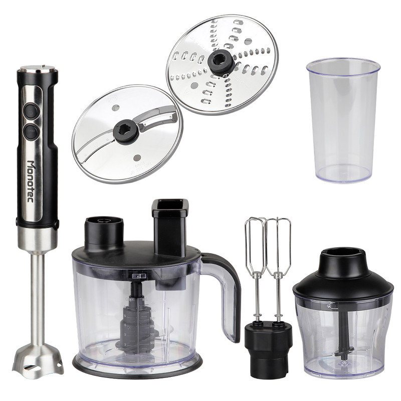 گوشت کوب برقی 6 کاره مونوتک توان مصرفی 1200w تیغه ضدزنگ دارای 10 سرعته محفظه خردکن 600 میلی لیتر کاربردهای همزن رنده اسلایسر خردکن گوشت کوب برقی محصولی پرکاربرد برای خانه هایتان