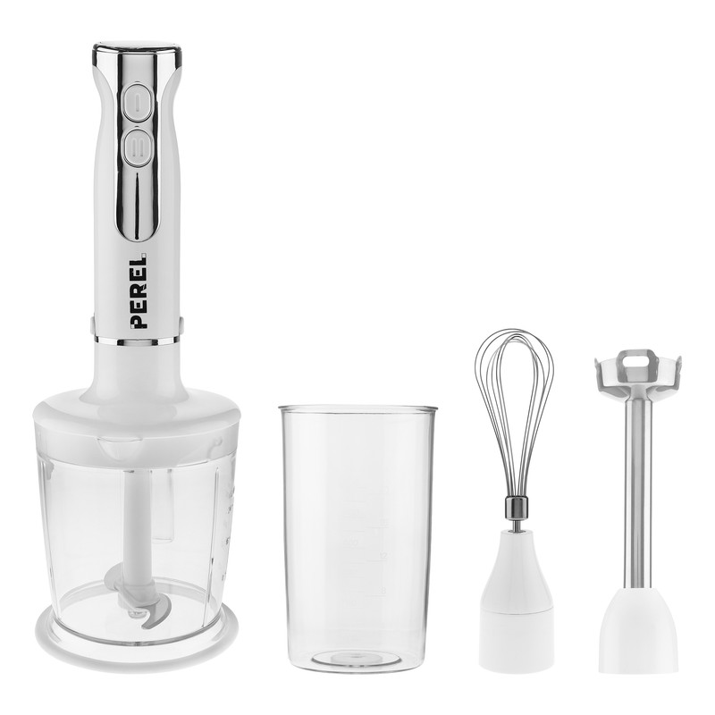 گوشت‌کوب برقی Perel MB270 با توان ۸۰۰ وات و طراحی ارگونومیک، یکی از گزینه‌های کاربردی و خوش‌ساخت برای استفاده روزمره در آشپزخانه است. این دستگاه چندکاره با دو سطح سرعت قابل تنظیم، امکان خردکردن، هم‌زدن، مخلوط‌کردن و حتی تهیه‌ی انواع سس و پوره را به‌راحتی فراهم می‌کند. در بسته‌بندی این مدل، علاوه بر میله‌ی اصلی استیل ضدزنگ، لیوان مدرج، همزن و ظرف خردکن نیز قرار گرفته تا بتوانید در کمترین زمان، نیازهای مختلف خود را پاسخ دهید. بدنه‌ی مقاوم، طراحی خوش‌دست از ویژگی‌های مهم این محصول هستند که آن را به انتخابی هوشمندانه برای هر آشپزخانه تبدیل می‌کنند.