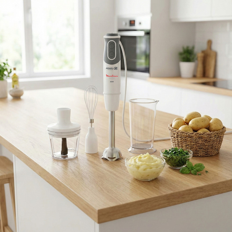 قدرت این دستگاه 800 وات است و 10 سرعت به اضافه دکمه توربو دارد. تیغه گوشتکوب 4 پره است جنس تیغهها از استیل ضدزنگ و به سفارش مولینکس توسط شرکت زولینگن آلمان ساخته شده است و با تکنولوژی جدید POWELIX( یعنی چرخش دورانی تیغه ها و 30 درصد سریع تر مواد را میکس میکند ) از پس خرد کردن و له کردن موادغذایی مختلف بر میآید. ، بدنه دستگاه از جنس پلاستیک ABS است.