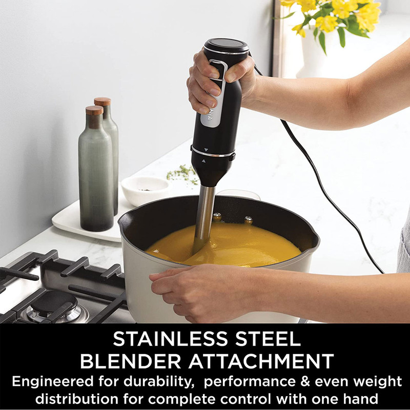 نینجا CI100UK دارای محفظه خردکن ۷۰۰ میلیلیتری برای خرد کردن سریع انواع سبزیجات و گوشت نرم است. علاوه بر این، لیوان مدرج و سری همزن به همراه دستگاه عرضه میشوند و برای تهیه خمیرهای سبک، مایع کیک یا ترکیب خامه کاربرد زیادی دارند. هرچند دستگاه دارای تنظیم سرعت تکمرحلهای برای عملکرد اصلی است، اما سری همزن آن از پنج سطح سرعت مستقل پشتیبانی میکند که امکان کنترل دقیقتر در همزدن مواد مختلف را به کاربر میدهد.