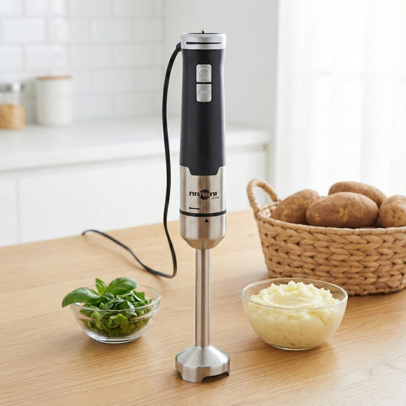 گوشت کوب برقی نانانی مدل NSB-103 با توان مصرفی 1000 وات، امکان له کردن و هم زدن انواع مواد غذایی را فراهم میکند. این دستگاه با 4 تیغه از جنس استیل ضدزنگ، قادر به کوبیدن مواد گوشتی، کتلت ها، الویه و … به طور کامل و یکنواخت است. این گوشت کوب برقی دارای قفل ایمنی است که از بروز حوادث ناخواسته جلوگیری میکند. با دکمه روشن و خاموش و قابلیت توربو، شما میتوانید کنترل کاملی بر روی عملکرد دستگاه داشته باشید. همچنین دارای حلقه آویز است که نگهداری آن را راحتتر میکند. گوشت کوب نانانی مدل NSB-103 یک انتخاب عالی برای کسانی است که به دنبال راه حل سریع و کارآمد برای آمادهسازی مواد غذایی هستند.