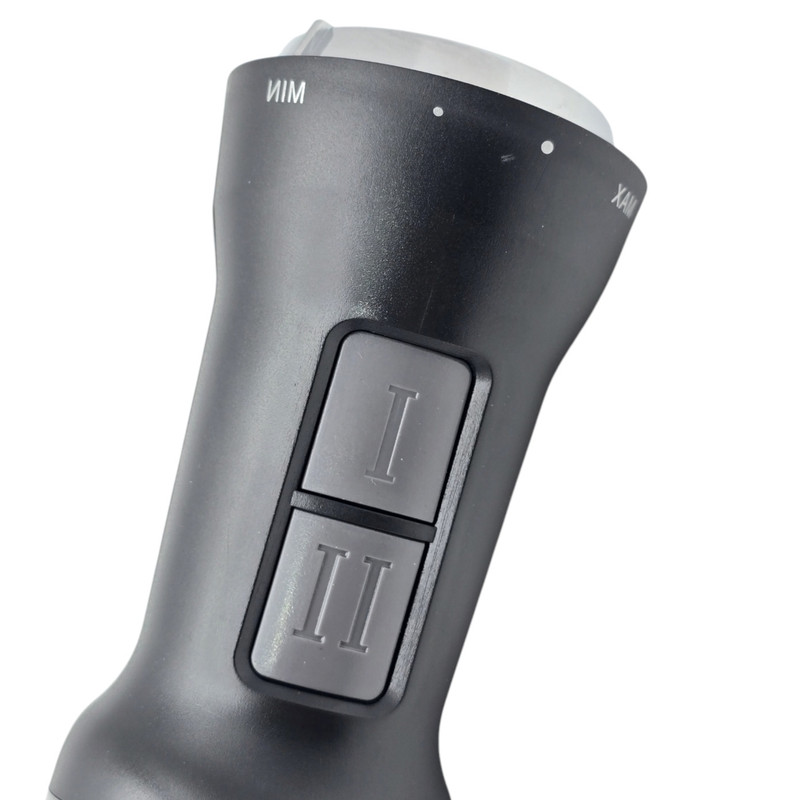 بدنه دستگاه از ترکیب استیل ضدزنگ براق و پلاستیک فشرده مقاوم ساخته شده تا ضمن دوام بالا و مقاومت در برابر حرارت، وزن متعادل و زیبایی بصری مطلوبی داشته باشد. طراحی دسته بهصورت ارگونومیک با سطح ضدلغزش است تا در کار طولانیمدت کنترل کاملی در دست کاربر باقی بماند. ساختار دکمهها و حلقه چرخشی کنترل سرعت نیز دسترسی آسان را ممکن میسازد و به کاربر اجازه میدهد در لحظه، شدت عملکرد موتور را تنظیم کند.