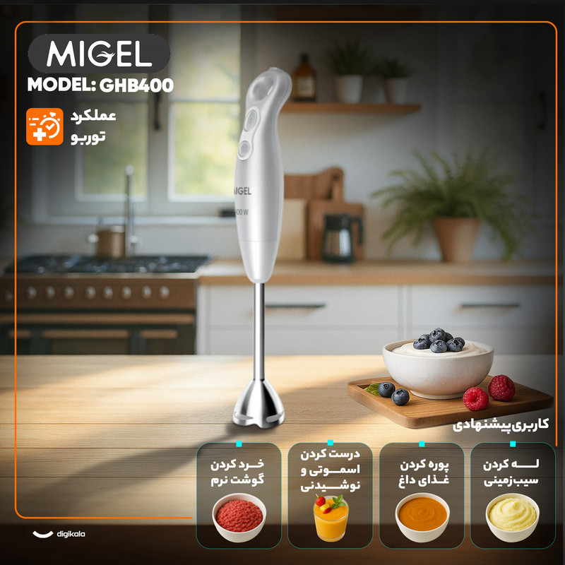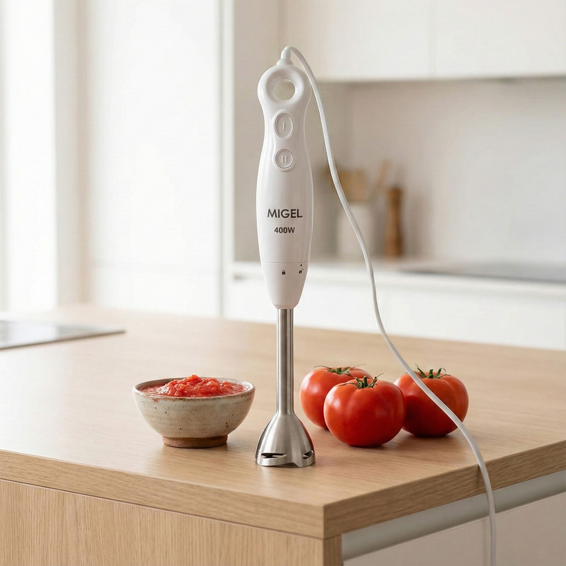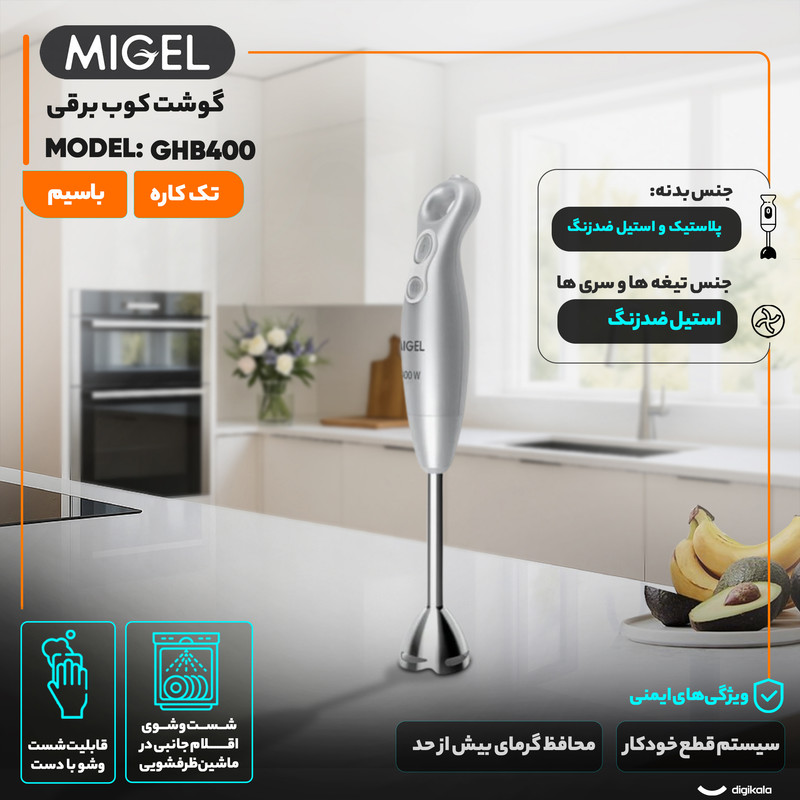 غذا ساز دستی میگل مدل GHB 400 با طراحی ساده در عین حال زیبا و کاربردی خود توانسته پاسخگوی نیاز هر فرد در آشپزخانه باشد.وجود 3 تیغه استیل ضد زنگ برروی یک محور باعث بالا رفتن کارایی این دستگاه شده است.