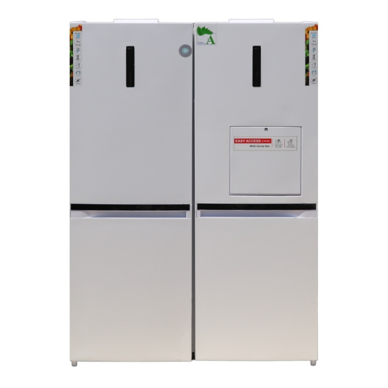 اتصال به آب شهری و یخساز اتوماتیک کندانسور مخفی هوم بار نوشیدنی ها ورق رنگی و استیل کره ای طبقات شیه شه ای نشکن دارای کشوی بزرگ نگهداری میوه پنل لمسی و نمایشگر دیجیتال گنجایش بالا یخچال و فریزر گردش هوای جندگانه با مدیریت خنکی و حذف بو
