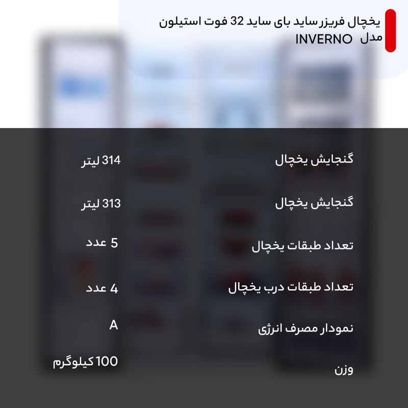 یخچال فریزر ساید بای ساید 32 فوت استیلون مدل INVERNO