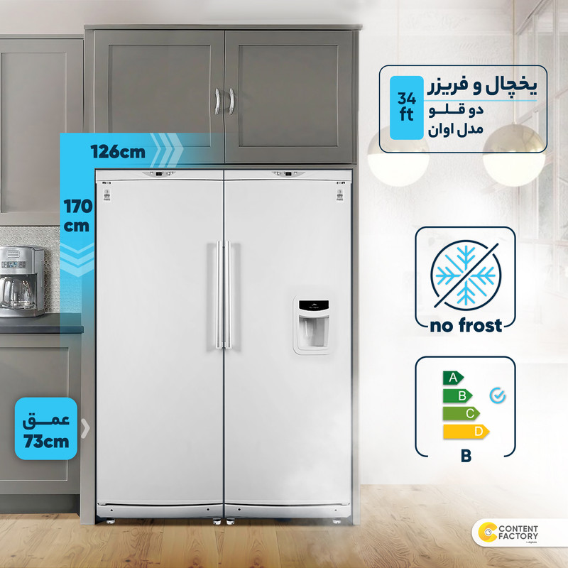 پارس یکی از با سابقههای بازار محصولات برودتی است که سالها با محصولات متنوع خود سعی بر برطرف سازی نیاز خانوادههای ایرانی دارد. یخچال و فریزر دوقلو 34 فوت پارس مدل اوان همان زبان طراحی خود را حفظ کرده با این تفاوت که سعی شده تا در آن از فناوریهای جدیدتر استفاده شود. حجم کلی 644 لیتر قطعاً یکی از بهترین ظرفیتها در بین برودتیهای خانگی است. از بین این ظرفیت 387 لیتر مربوط به یخچال و 257 لیتر مربوط به فریزر است. پنج طبقه به همراه یک کشو و شش طبقه روی درب یخچال این محصول قرار گرفته است. در بخش فریزر هم هشت کشو وظیفه نگهداری از مواد غذایی را بر عهده دارد. پارس این یخچال و فریزر دو قلو را به سایر ویژگیها همچون طبقات قابل تنظیم، هشدار افزایش دما و لاسیتک درب ضدباکتری مجهز کرده است. البته سیستم سرمایش سریع یخچال و انجماد سریع فریزر برای رسیدن به دمای ایده آل در کمترین زمان و هشدارباز بودن درب را نباید فراموش کرد.