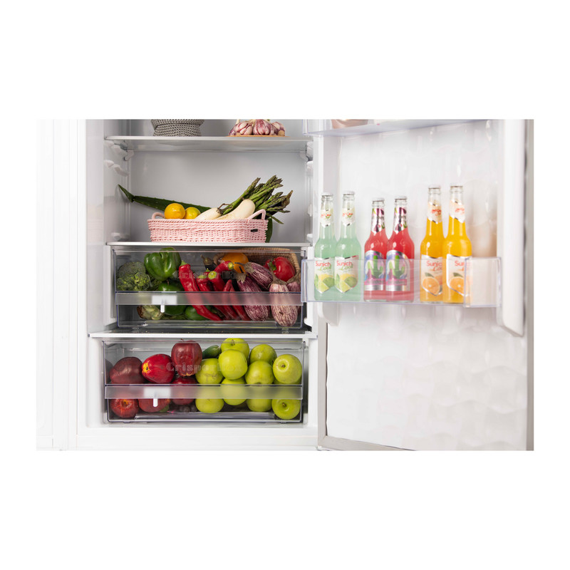 فضای بسیار زیاد و مناسب / طبقات شیشه‌ای نشکن / جای لبنیات و جای بطری / کشوی میوه و سبزیجات تازه / آلارم درب /