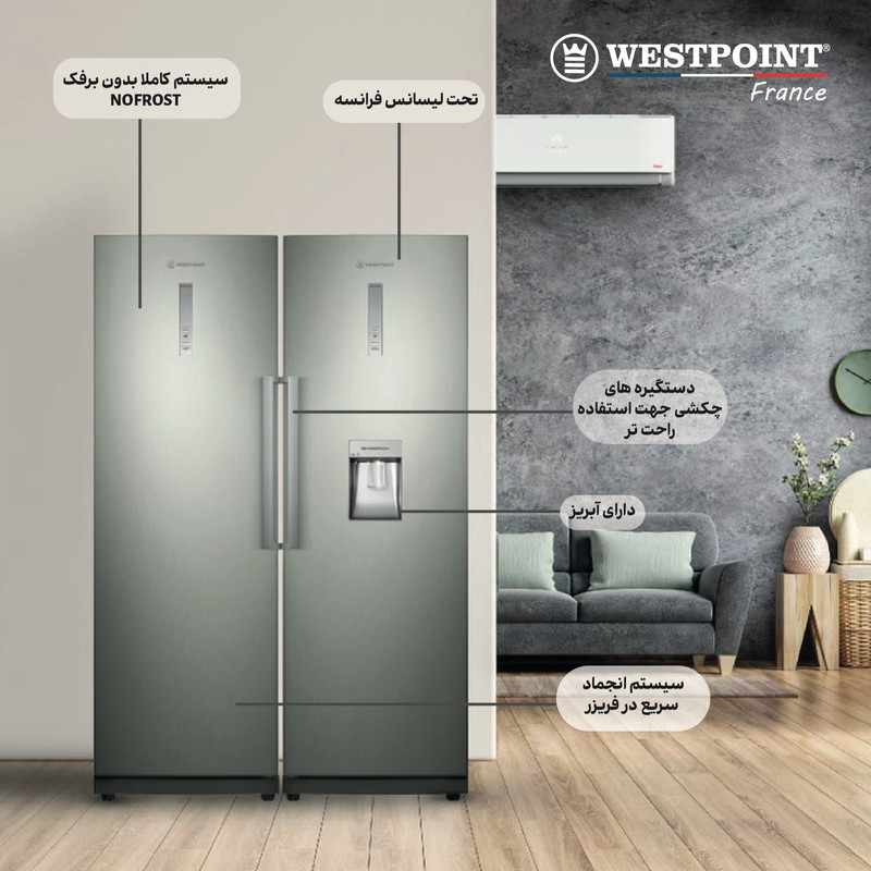 دوقلوهای وست پوینت از سری محصولات یخچال و فریزر می باشد که با تکنولوژی بدون برفک(NOFROST) فریزر و امکان انجماد سریع آسایش و اوج کیفیت را برای مصرف کننده فراهم کرده است . کشوی مخصوص نگه داری میوه و سبزی و تکنولوژی گردش هوا در تمامی یخچال Air Circulation امکان تازه بودن مواد غذایی را برای شما به ارمغان می آورد . امکان تنظیم رطوبت و دما برای کشو های یخچال در این محصول وجود دارد .
