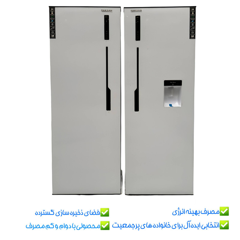 یخچال و فریزر دوقلو تکسان مدل تک، انتخابی بینظیر برای خانوادههای پرجمعیت و کسانی است که به فضای ذخیرهسازی گسترده نیاز دارند. این دستگاه با طراحی مدرن و مینیمال خود، بهراحتی با هر نوع چیدمان آشپزخانه هماهنگ میشود. با ابعاد استاندارد (ارتفاع 185، عمق 65 و پهنای 65+66سانتیمتر یخچال و فریزر) و گنجایش مفید یخچال 365 لیتر و حجم مفید فریزر 230 لیتر فضای کافی برای نگهداری مواد غذایی فراهم میکند. قسمت یخچال با 5 طبقه، 2 کشو و 6 طبقه درب یخچال با آب سرد کن برای ذخیرهسازی اقلام متنوع ایدهآل است.فریزر نیز با 6 کشو، 2 طبقه با یخساز مکانیکی و محفظه بزرگ داخلی، امکان دسترسی سریع و منظم به مواد غذایی را فراهم میکند. جهت باز شدن درب این یخچال و فریزر بهترتیب به چپ به راست و راست به چپ است. این مدل با رتبه انرژی B، مجهز به فناوری نوفراست (بدون برفک)، و عملکرد کاهش دهنده مصرف انرژی طراحی شده است. قابلیتهایی همچون سیستم تهویه مناسب، نمایشگر و تنظیم تمام دیجیتال، آب سرد کن و قفل کودک از دیگر ویژگیهای این دستگاه هستند. یخچال و فریزر دوقلو تکسان مدل تک، انتخابی ایدهآل برای کسانی است که به دنبال ترکیبی از زیبایی، عملکرد و کارایی هستند. اگر به دنبال محصولی بادوام و کممصرف هستید می توانید از این محصول استفاده کنید.